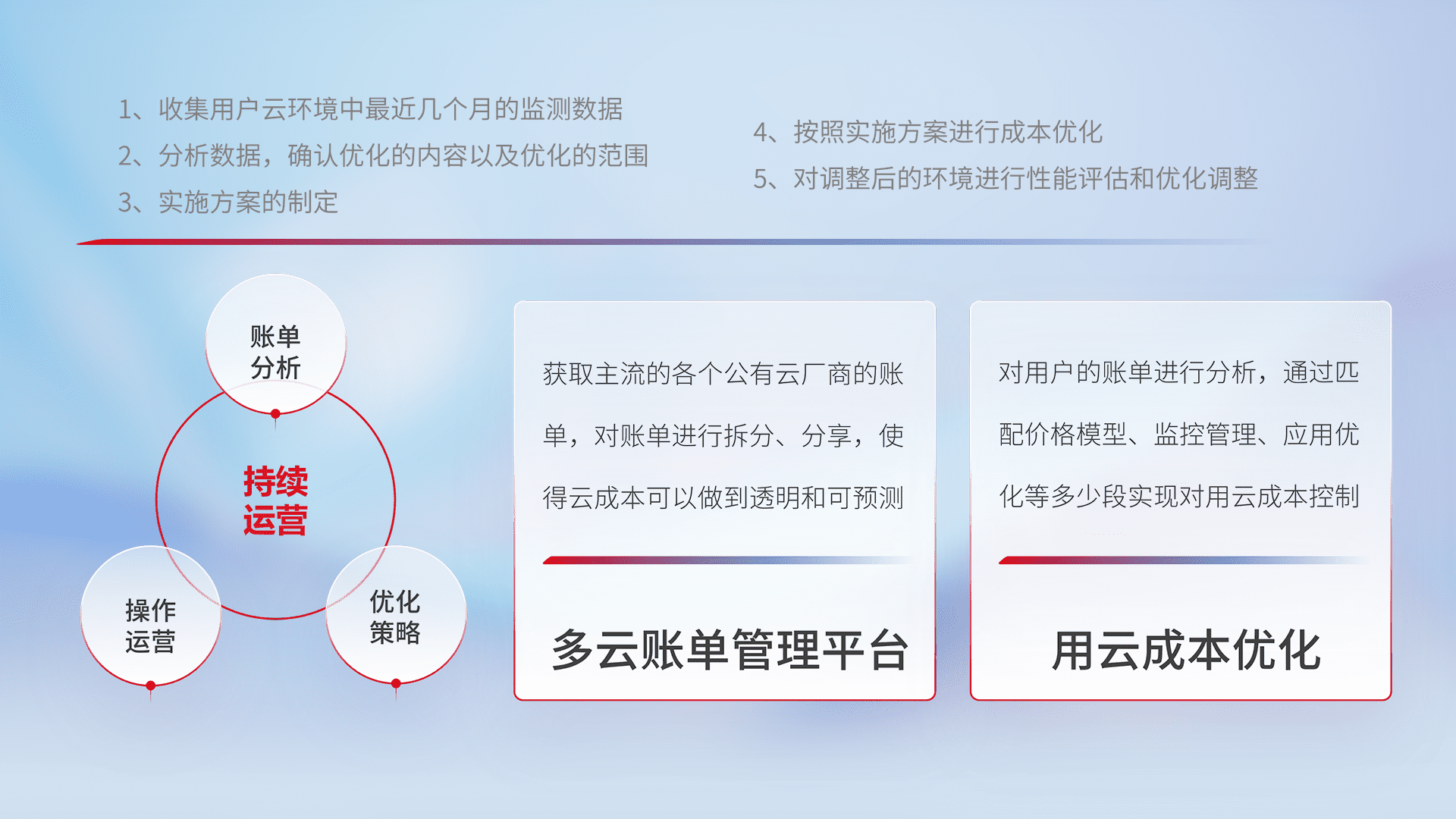监控业务系统资源开销,,对资源的消耗精确计量,,,实现费用的透明化管理,,,,不断提升资源使用率,,调整资源购买方式,,,,降低资源费用成本,,,用云成本可预测、、、、用云费用可优化,,,云资源配额有据可依。。