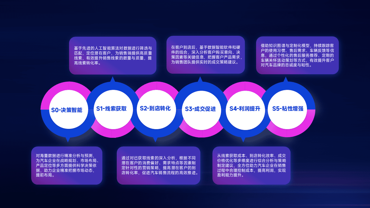 通过拓宽潜在客户来源、、优化线索分配并提高到店转化率,,以增强销售效率。。同时,,,利用线索数据不断优化分析模型,,,有效提升转化率,,扩大营销影响力。。
